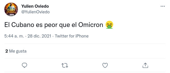 “El cubano es peor que el Omicron”, escribió el artista en su cuenta de Twitter haciendo referencia a la variante de coronavirus que afecta al mundo entero.