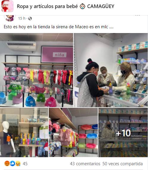 Otros cubanos compartieron imágenes en grupos de Facebook como el de Ropa y artículos para bebé en Camagüey donde decenas de madres mostraron su indignación al ver a la venta en MLC los productos que sus hijos necesitan.