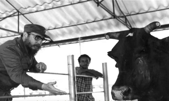 “Tenemos uno de los mejores toros actualmente. El año pasado produjo 22.000 dosis para inseminar, 22.000 pastillas de semen congelado. Eso quiere decir que se pueden inseminar más de 20.000 vacas con la producción de un solo toro. Desde luego, este toro también se puso en aire acondicionado”, dijo Fidel en el acto celebrado un año después de llegar el toro a Cuba.