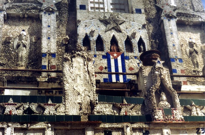 En el añejo barrio de Santos Suárez, en La Habana, existe un edificio casi desconocido por los cubanos, pero que es unico en el mundo y cuya fachada fue construida por completo a mano por una sola persona, llena de caracoles, conchas marinas, figuras misteriosas y estrellas que le rinden homenaje a la Virgen de la Caridad del Cobre.