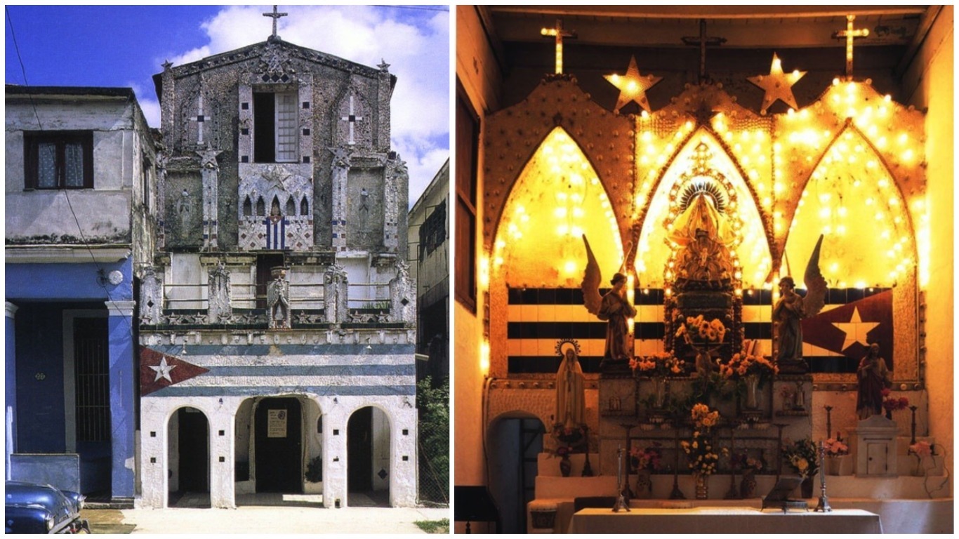 En el añejo barrio de Santos Suárez, en La Habana, existe un edificio casi desconocido por los cubanos, pero que es unico en el mundo y cuya fachada fue construida por completo a mano por una sola persona, llena de caracoles, conchas marinas, figuras misteriosas y estrellas que le rinden homenaje a la Virgen de la Caridad del Cobre.