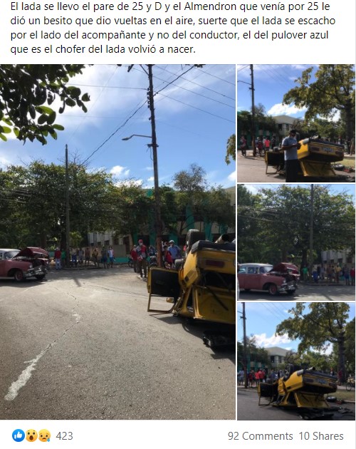El incidente tuvo lugar este sábado, en las intersecciones de las calles 25 y D, en el Vedado habanero, y según testigos, el Moskvitch no detuvo la marcha en una señal de Pare, por lo que el otro vehículo lo impactó por la derecha.