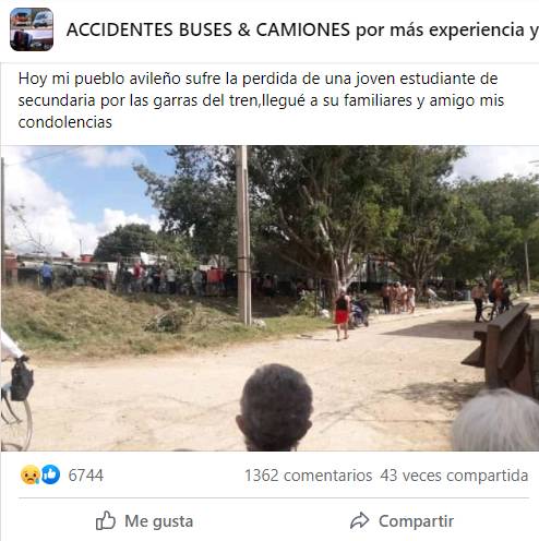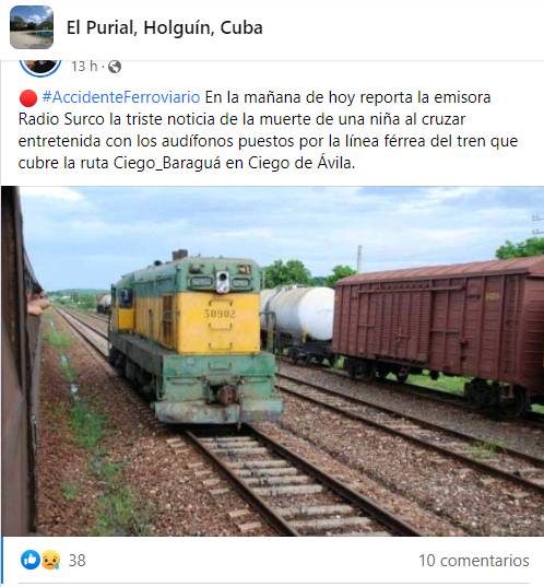 «En la mañana de hoy se dio la triste noticia de la muerte de una niña al cruzar entretenida con los audífonos puestos por la línea férrea del tren que cubre la ruta Ciego – Baraguá en Ciego de Ávila», indicó el cubano Rolando Guerra Machín en el grupo de Facebook El Purial, Holguín, Cuba.
