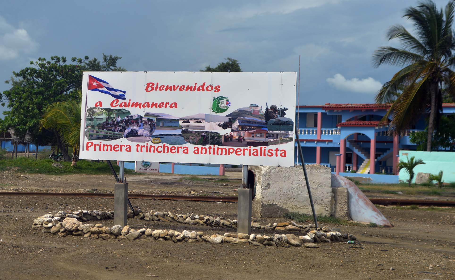 “Caimanera, primera trinchera antiimperialista”, así se lee en un cartel que recibe a quienes llegan a este lugar. Un poblado en el que residen actualmente unas 11.173 personas y a cuyos márgenes solo pueden acceder los locales o quienes cuentan con un permiso especial.