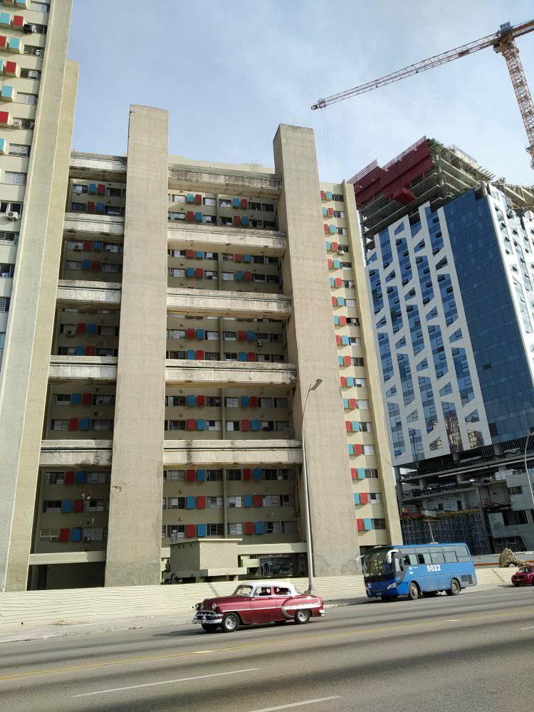 Esta mole nació de la genialidad del arquitecto cubano Antonio Quintana, quien logró que por primera vez en Cuba se utilizara el sistema de Moldes Deslizantes en viviendas de altura.