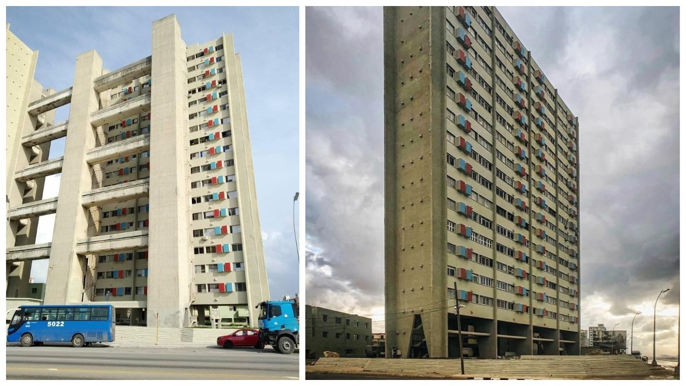 En el Malecón de La Habana se alza una de las edificaciones más peculiares de Cuba, con un estilo brutalista y que rompe con toda la estética de su entorno, su nombre: Edificio Girón. Hoy la destrucción y el abandono se adueñan de sus escaleras, de sus paredes y de los dos bloques de 17 pisos de apartamentos.