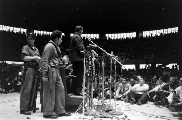 Junto a los periódicos, haciendo un llamado para participar en un acto a celebrarse frente al Palacio Presidencial, podían verse aún historietas de Superman.