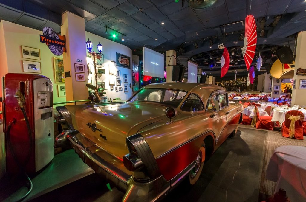 En el corazón de La Habana, al interior del famoso hotel Meliá Cohíba, se encuentra uno de los restaurantes más curiosos de Cuba, con una ambientación que lo hace único. Dentro podemos encontrarnos varios automóviles antiguos de los años 50 completamente restaurados, valiosas motocicletas y hasta una avioneta completa, de tamaño real, colgando con cables de su techo… Este es el Habana Café.
