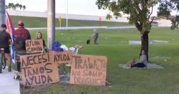 Laura Marante y Michael Pérez son dos inmigrantes cubanos que llegaron a Miami hace poco más de una semana y se encuentran pidiendo ayuda a la comunidad para salir de la calle.