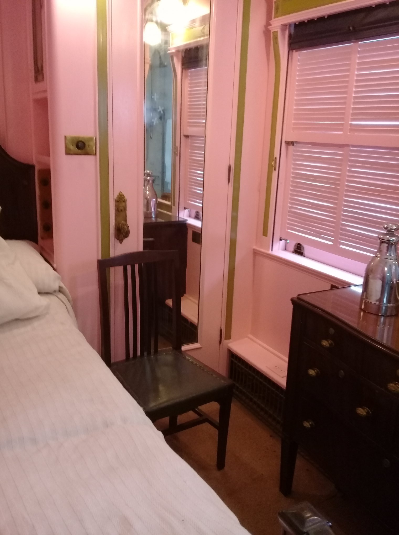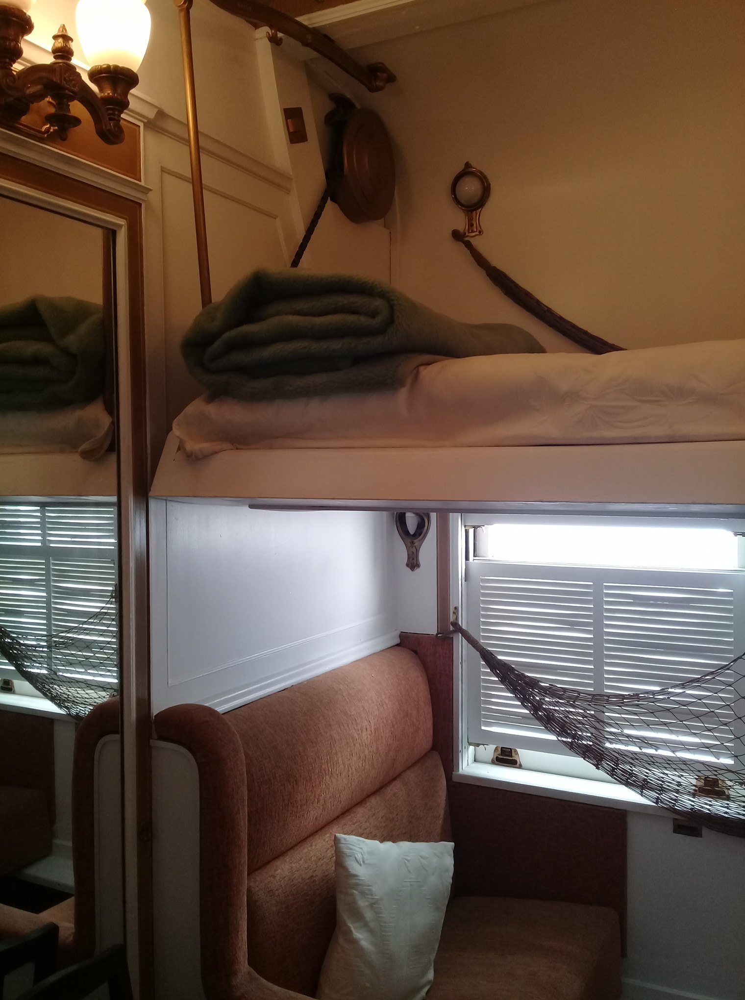 Las dos piezas del tren más exclusivas están dotadas de cómoda, closet con espejos externos y un baño con bañera de mármol blanco e instalación de plomería bronceada en el medio de ambas.