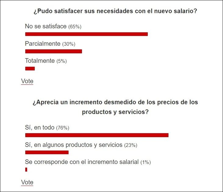 La página web del medio muestra los resultados de los cuestionarios, los que, contradiciendo el final que Cubadebate esperaba, fueron negativos en su mayoría, reflejando la crítica situación económica que vive Cuba desde hace más de un año.