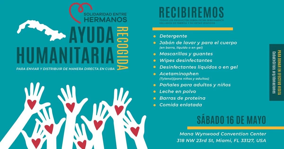 La iniciativa, que lleva por nombre ‘Solidaridad entre Hermanos’, iniciará a las 10 de la mañana en el Mana Convention Centre, del barrio de Wynwood, donde se recibirán los donativos de alimentos, medicinas y dinero que tenga dispuesto para contribuir los residentes del sur de Florida, la cual se entregará de manera directa a personas necesitadas en Cuba.