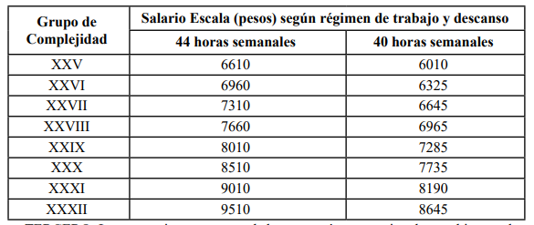 En cuanto a los recién graduado, se establece que durante el período de cumplimiento del Servicio Social, cuando no ocupan plazas, los grupos de complejidad de la escala salarial siguientes: