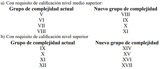 Se establecen los grupos de complejidad de los cargos técnicos según el requisito de calificación de la manera siguiente: